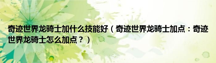 大家好,小安來為大家解答以上問題。奇跡世界龍騎士加什么技能好,奇跡世界龍騎士加點:奇跡世界龍騎士怎么加點?很多人還不知道,現(xiàn)在讓我們一起來看看吧!