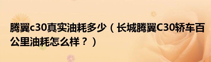 大家好,小安來為大家解答以上問題。騰翼c30真實油耗多少,長城騰翼C30轎車百公里油耗怎么樣?很多人還不知道,現在讓我們一起來看看吧!