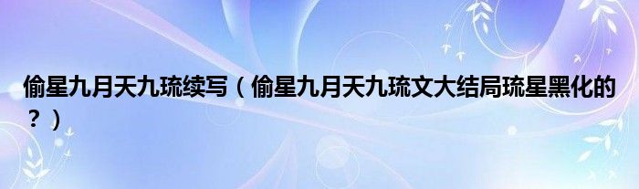 大家好,小安來為大家解答以上問題。偷星九月天九琉續寫,偷星九月天九琉文大結局琉星黑化的?很多人還不知道,現在讓我們一起來看看吧!