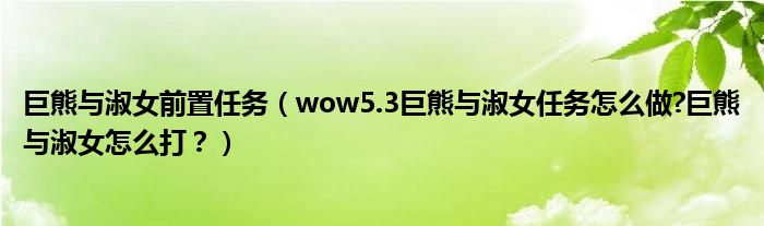大家好,小安來為大家解答以上問題。巨熊與淑女前置任務,wow5.3巨熊與淑女任務怎么做?巨熊與淑女怎么打?很多人還不知道,現在讓我們一起來看看吧!