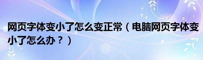 大家好,小安來為大家解答以上問題。網頁字體變小了怎么變正常,電腦網頁字體變小了怎么辦?很多人還不知道,現在讓我們一起來看看吧!
