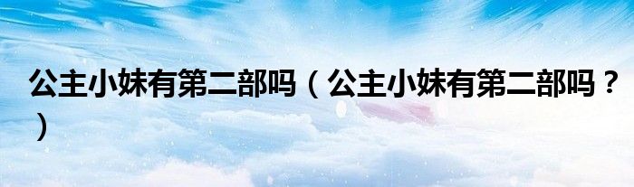 大家好,小安來為大家解答以上問題。公主小妹有第二部嗎,公主小妹有第二部嗎?很多人還不知道,現在讓我們一起來看看吧!