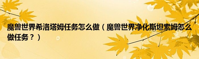 大家好,小安來為大家解答以上問題。魔獸世界希洛塔姆任務(wù)怎么做,魔獸世界凈化斯坦索姆怎么做任務(wù)?很多人還不知道,現(xiàn)在讓我們一起來看看吧!