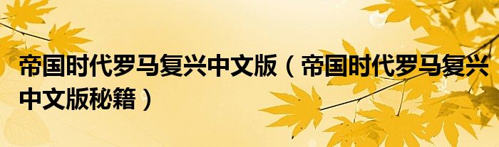 大家好,小安來為大家解答以上問題。帝國時代羅馬復興中文版,帝國時代羅馬復興中文版秘籍很多人還不知道,現在讓我們一起來看看吧!