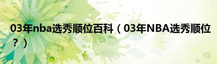 大家好,小安來為大家解答以上問題。03年nba選秀順位百科,03年NBA選秀順位?很多人還不知道,現在讓我們一起來看看吧!