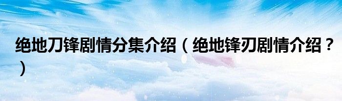 大家好,小安來為大家解答以上問題。絕地刀鋒劇情分集介紹,絕地鋒刃劇情介紹?很多人還不知道,現(xiàn)在讓我們一起來看看吧!