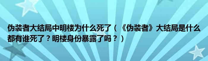 大家好,小安來為大家解答以上問題。偽裝者大結局中明樓為什么死了,《偽裝者》大結局是什么都有誰死了?明樓身份暴露了嗎?很多人還不知道,現在讓我們一起來看看吧!