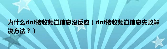 大家好,小安來為大家解答以上問題。為什么dnf接收頻道信息沒反應,dnf接收頻道信息失敗解決方法?很多人還不知道,現在讓我們一起來看看吧!