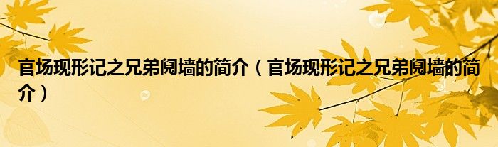 1、 《官場現(xiàn)形記》的《兄弟鬩墻》介紹: