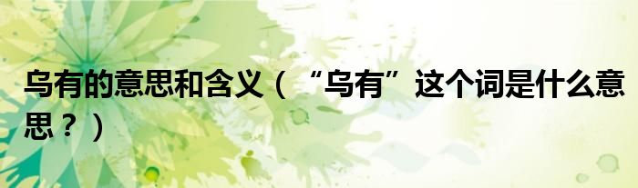 大家好,小安來(lái)為大家解答以上問(wèn)題。烏有的意思和含義,“烏有”這個(gè)詞是什么意思?很多人還不知道,現(xiàn)在讓我們一起來(lái)看看吧!