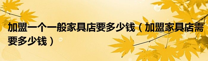大家好,小安來為大家解答以上問題。加盟一個一般家具店要多少錢,加盟家具店需要多少錢很多人還不知道,現在讓我們一起來看看吧!