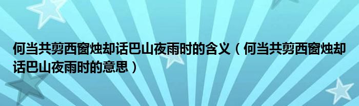 大家好,小安來為大家解答以上問題。何當共剪西窗燭卻話巴山夜雨時的含義,何當共剪西窗燭卻話巴山夜雨時的意思很多人還不知道,現在讓我們一起來看看吧!