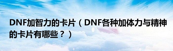 大家好,小安來為大家解答以上問題。DNF加智力的卡片,DNF各種加體力與精神的卡片有哪些?很多人還不知道,現(xiàn)在讓我們一起來看看吧!
