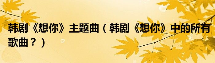 大家好,小安來為大家解答以上問題。韓劇《想你》主題曲,韓劇《想你》中的所有歌曲?很多人還不知道,現在讓我們一起來看看吧!