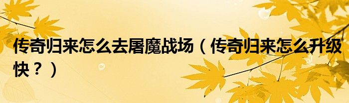 大家好,小安來(lái)為大家解答以上問(wèn)題。傳奇歸來(lái)怎么去屠魔戰(zhàn)場(chǎng),傳奇歸來(lái)怎么升級(jí)快?很多人還不知道,現(xiàn)在讓我們一起來(lái)看看吧!