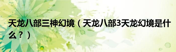 大家好,小安來為大家解答以上問題。天龍八部三神幻境,天龍八部3天龍幻境是什么?很多人還不知道,現在讓我們一起來看看吧!