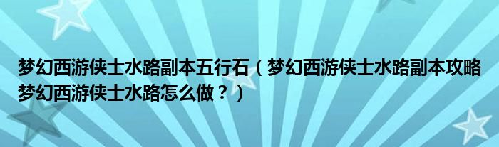 大家好,小安來為大家解答以上問題。夢幻西游俠士水路副本五行石,夢幻西游俠士水路副本攻略夢幻西游俠士水路怎么做?很多人還不知道,現(xiàn)在讓我們一起來看看吧!