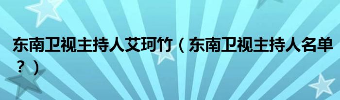 大家好,小安來為大家解答以上問題。東南衛視主持人艾珂竹,東南衛視主持人名單?很多人還不知道,現在讓我們一起來看看吧!