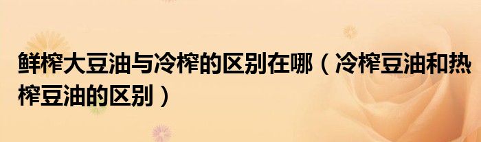大家好,小安來為大家解答以上問題。鮮榨大豆油與冷榨的區(qū)別在哪,冷榨豆油和熱榨豆油的區(qū)別很多人還不知道,現(xiàn)在讓我們一起來看看吧!