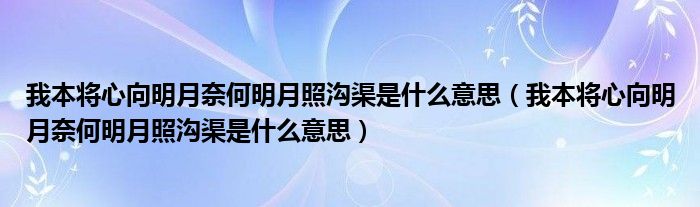 大家好,小安來為大家解答以上問題。我本將心向明月奈何明月照溝渠是什么意思,我本將心向明月奈何明月照溝渠是什么意思很多人還不知道,現(xiàn)在讓我們一起來看看吧!