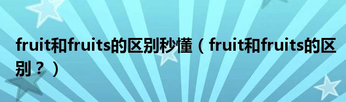 大家好,小安來為大家解答以上問題。fruit和fruits的區別秒懂,fruit和fruits的區別?很多人還不知道,現在讓我們一起來看看吧!