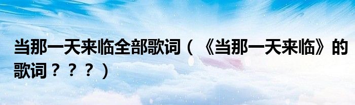大家好,小安來為大家解答以上問題。當那一天來臨全部歌詞,《當那一天來臨》的歌詞???很多人還不知道,現在讓我們一起來看看吧!