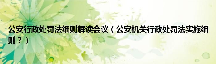 大家好,小安來(lái)為大家解答以上問(wèn)題。公安行政處罰法細(xì)則解讀會(huì)議,公安機(jī)關(guān)行政處罰法實(shí)施細(xì)則?很多人還不知道,現(xiàn)在讓我們一起來(lái)看看吧!