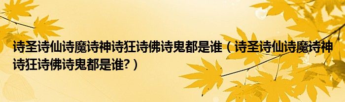 大家好,小安來為大家解答以上問題。詩圣詩仙詩魔詩神詩狂詩佛詩鬼都是誰,詩圣詩仙詩魔詩神詩狂詩佛詩鬼都是誰?很多人還不知道,現在讓我們一起來看看吧!