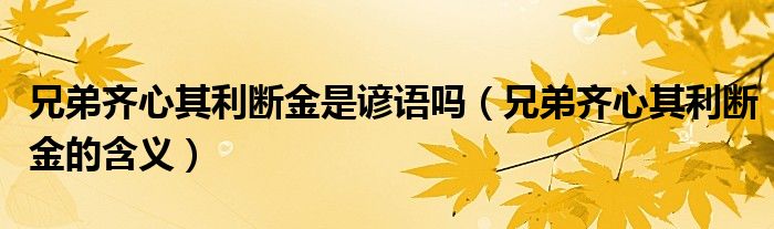 大家好,小安來為大家解答以上問題。兄弟齊心其利斷金是諺語嗎,兄弟齊心其利斷金的含義很多人還不知道,現(xiàn)在讓我們一起來看看吧!
