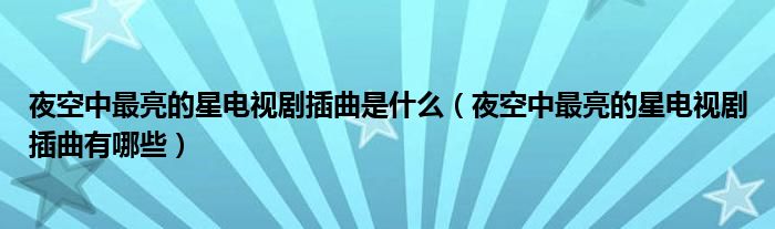 大家好,小安來為大家解答以上問題。夜空中最亮的星電視劇插曲是什么,夜空中最亮的星電視劇插曲有哪些很多人還不知道,現在讓我們一起來看看吧!