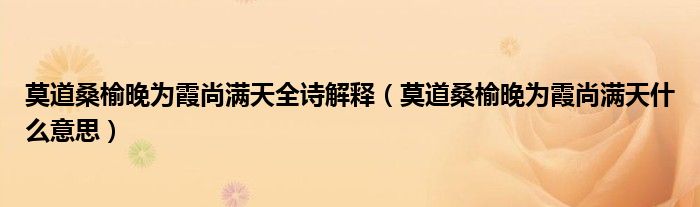 大家好,小安來為大家解答以上問題。莫道桑榆晚為霞尚滿天全詩解釋,莫道桑榆晚為霞尚滿天什么意思很多人還不知道,現在讓我們一起來看看吧!
