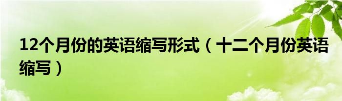 大家好,小安來為大家解答以上問題。12個月份的英語縮寫形式,十二個月份英語縮寫很多人還不知道,現在讓我們一起來看看吧!
