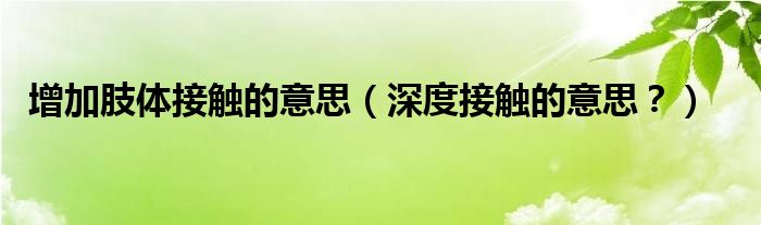 大家好,小安來為大家解答以上問題。增加肢體接觸的意思,深度接觸的意思?很多人還不知道,現在讓我們一起來看看吧!