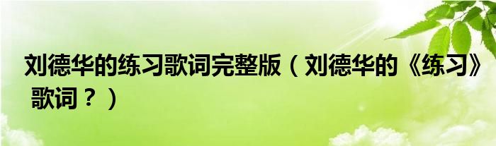 大家好,小安來為大家解答以上問題。劉德華的練習歌詞完整版,劉德華的《練習》 歌詞?很多人還不知道,現在讓我們一起來看看吧!