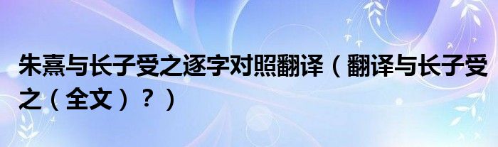 大家好,小安來為大家解答以上問題。朱熹與長子受之逐字對照翻譯,翻譯與長子受之,全文?很多人還不知道,現在讓我們一起來看看吧!