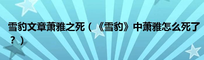 大家好,小安來為大家解答以上問題。雪豹文章蕭雅之死,《雪豹》中蕭雅怎么死了?很多人還不知道,現在讓我們一起來看看吧!