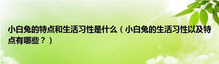 大家好,小安來為大家解答以上問題。小白兔的特點和生活習(xí)性是什么,小白兔的生活習(xí)性以及特點有哪些?很多人還不知道,現(xiàn)在讓我們一起來看看吧!