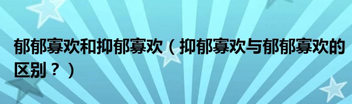 大家好,小安來為大家解答以上問題。郁郁寡歡和抑郁寡歡,抑郁寡歡與郁郁寡歡的區別?很多人還不知道,現在讓我們一起來看看吧!