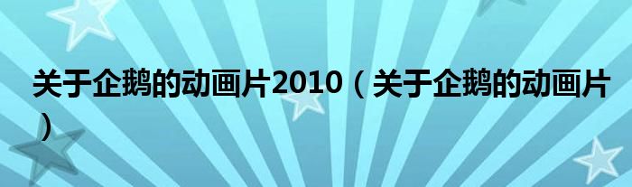 大家好,小安來為大家解答以上問題。關于企鵝的動畫片2010,關于企鵝的動畫片很多人還不知道,現在讓我們一起來看看吧!