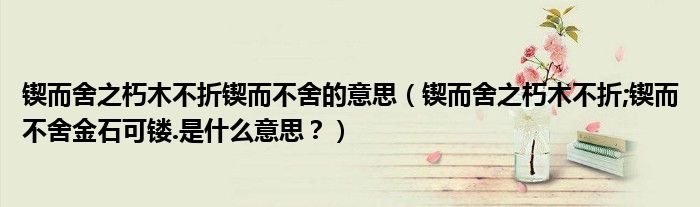 大家好,小安來為大家解答以上問題。鍥而舍之朽木不折鍥而不舍的意思,鍥而舍之朽木不折;鍥而不舍金石可鏤.是什么意思?很多人還不知道,現(xiàn)在讓我們一起來看看吧!