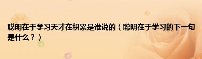1、 “智慧在于學習”的下一句話是“天才在于積累”。