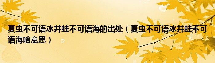 大家好,小安來為大家解答以上問題。夏蟲不可語冰井蛙不可語海的出處,夏蟲不可語冰井蛙不可語海啥意思很多人還不知道,現在讓我們一起來看看吧!