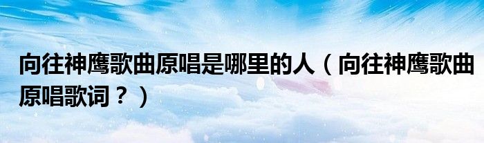 大家好,小安來為大家解答以上問題。向往神鷹歌曲原唱是哪里的人,向往神鷹歌曲原唱歌詞?很多人還不知道,現(xiàn)在讓我們一起來看看吧!