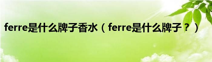大家好,小安來為大家解答以上問題。ferre是什么牌子香水,ferre是什么牌子?很多人還不知道,現在讓我們一起來看看吧!