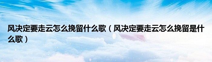 大家好,小安來為大家解答以上問題。風決定要走云怎么挽留什么歌,風決定要走云怎么挽留是什么歌很多人還不知道,現(xiàn)在讓我們一起來看看吧!