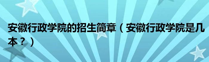 大家好,小安來為大家解答以上問題。安徽行政學院的招生簡章,安徽行政學院是幾本?很多人還不知道,現在讓我們一起來看看吧!