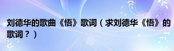大家好,小安來為大家解答以上問題。劉德華的歌曲《悟》歌詞,求劉德華《悟》的歌詞?很多人還不知道,現(xiàn)在讓我們一起來看看吧!
