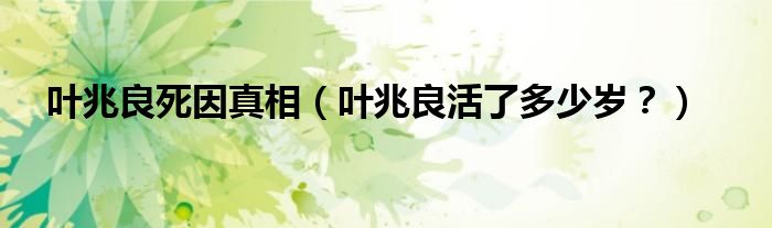 大家好,小安來為大家解答以上問題。葉兆良死因真相,葉兆良活了多少歲?很多人還不知道,現在讓我們一起來看看吧!