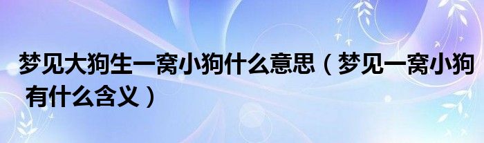 大家好,小安來為大家解答以上問題。夢見大狗生一窩小狗什么意思,夢見一窩小狗 有什么含義很多人還不知道,現在讓我們一起來看看吧!