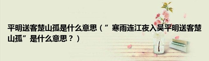 大家好,小安來為大家解答以上問題。平明送客楚山孤是什么意思,”寒雨連江夜入?yún)瞧矫魉涂统焦隆笔鞘裁匆馑迹亢芏嗳诉€不知道,現(xiàn)在讓我們一起來看看吧!